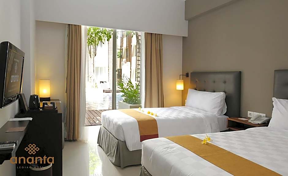 This exotic oasis features an outdoor swimming pool, perfect for a refreshing dip, and a kids' pool to keep the little ones entertained. The hotel's free private parking and complimentary WiFi ensure a hassle-free stay. With amenities like air conditioning, room service, and a 24-hour front desk, your comfort is a top priority at Ananta Legian Hotel. Enjoy the sunset from the sun deck, savor a drink at the bar, or indulge in a delicious meal at the restaurant on-site.